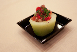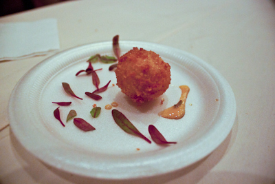 Other big stand-outs included Oceanaire Seafood Room’s chef Aaron Valimont and his fried foie mousse ball. The largish-sized ball was intended to be eaten whole to allow the intense flavors to explode – and they did.