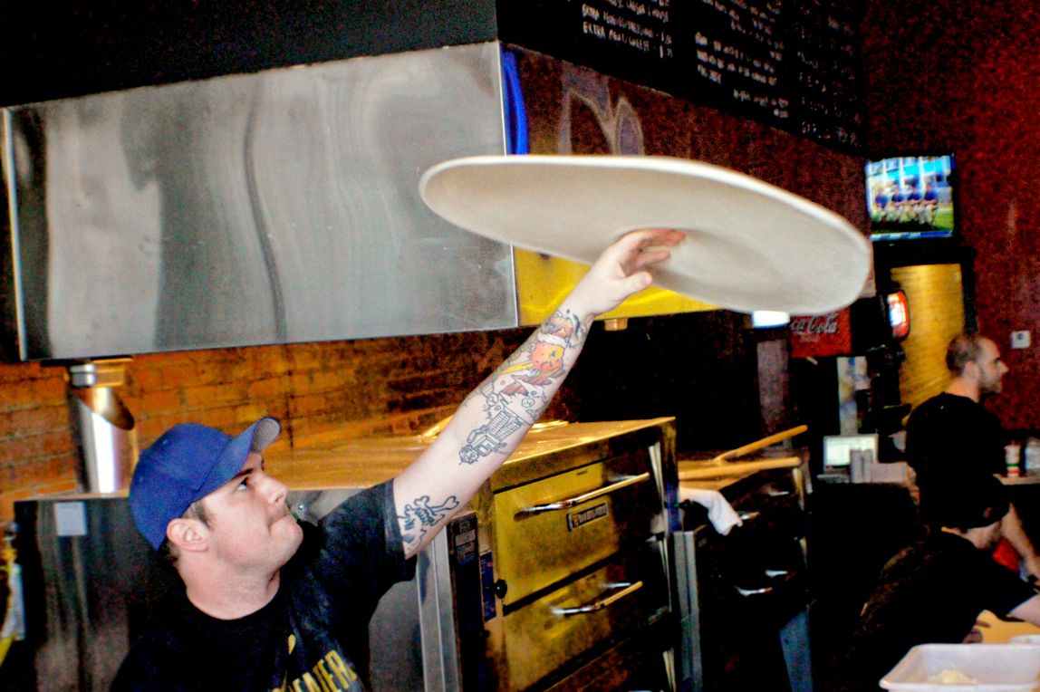 Mike Turley has been twirling pizzas for the past 8 years; he’s a pro to say the least. Any seat in the house is a front row seat, as you watch his amazing hand acrobatics transform a lump of dough into a majestic, gigantic, sheet of pizza heaven. We’re talking 30” pizzas here people. Feel free to load it up with any ingredient of your choice ranging from artichokes, broccoli, peppers to salami, meatballs and bacon.