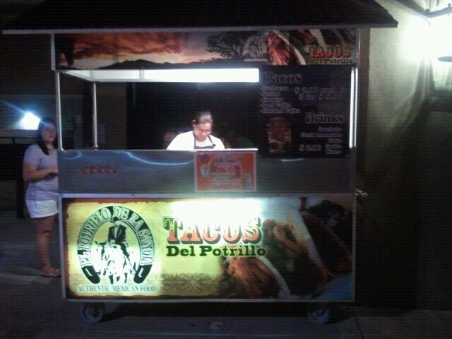 While roaming around The Harbor in Rockwall last Thursday during the concert series at the lake I started to get a little hungry but with so many people out there the sit down restaurants were pretty full. As I started to see if there were any street vendors there I came across a small taco stand called Tacos Del Potrillo a side business from it’s main restaurant called El Potrillo De La Sandia located on the North side of The Harbor by the large fountain.