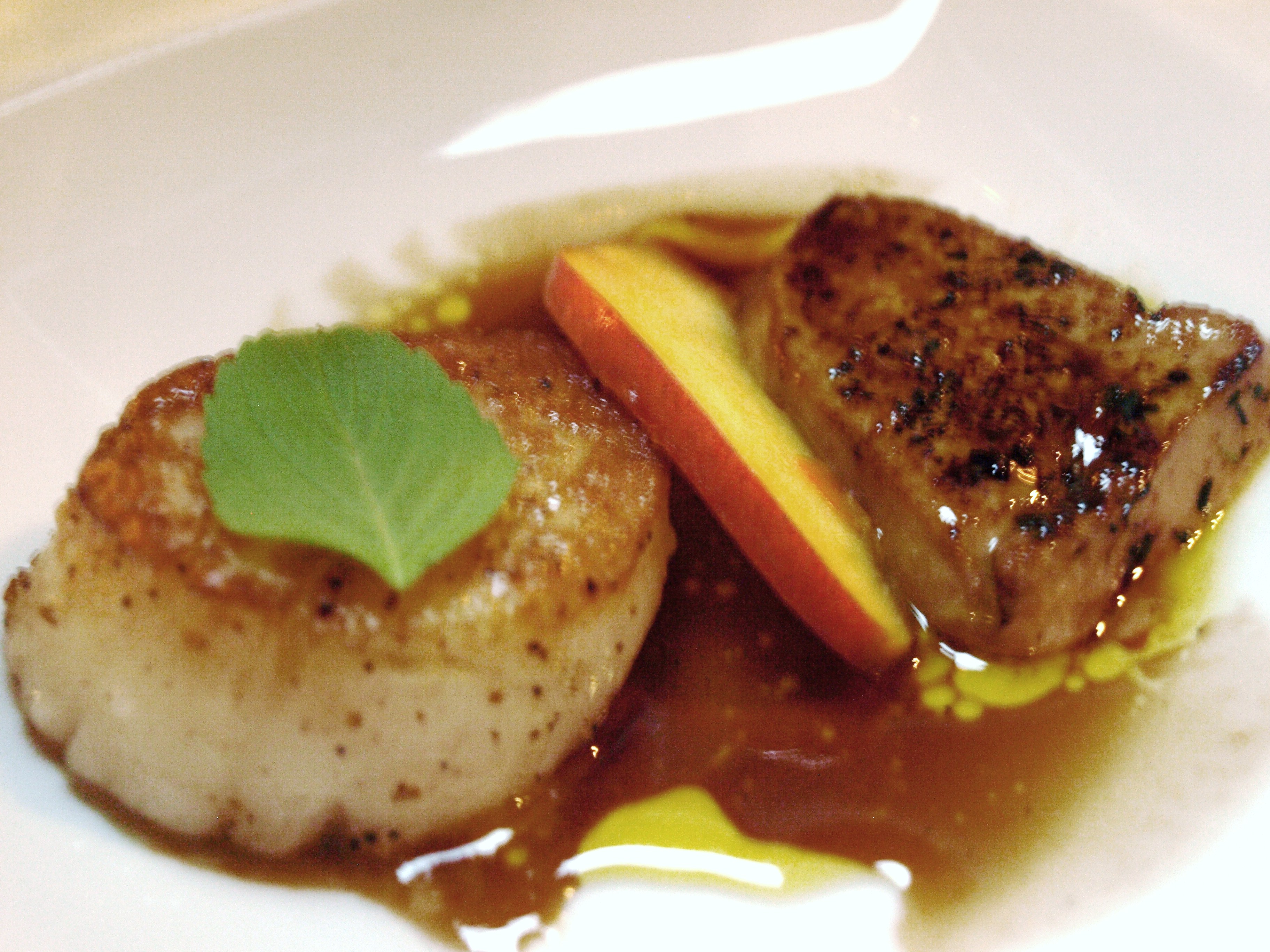 Course 2: Foie Gras, sea scallop, Texas peach and Basil paired with 2009 Russian River Valley Estate Chardonnay