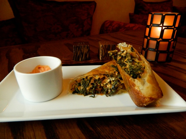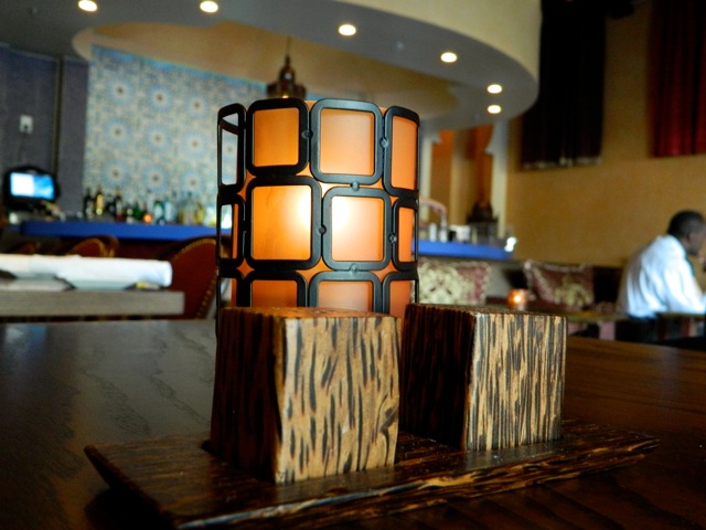 First of all, the tiny space accomplishes exactly what owners Sam and Yaser intended: to create a bit of what they call “Arabian Nights” romance in the heart of Dallas. Face away from the windows and all the shirtless frat boys heading out for their evening run and look toward the bar, and it truly does feel like you’re in a different world. Stunning fabrics adorn the walls, ornate tufted stools surround the center tables, and gorgeous lanterns hang from overhead.