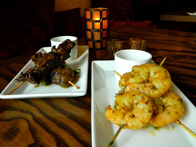 So here goes the rest. Grilled beef kebabs are marinated in a sweet-tart pomegranate molasses, finished off with oregano, cumin and fresh garlic. The tender beef is cooked to perfection and unlike any steak within a five mile radius. Grilled shrimp kebabs featured nice meaty shrimp marinated in Moroccan dry seafood spices then served with tomato chermoula (a mixture of oil, herbs, lemon juice and spices) and tabouleh.