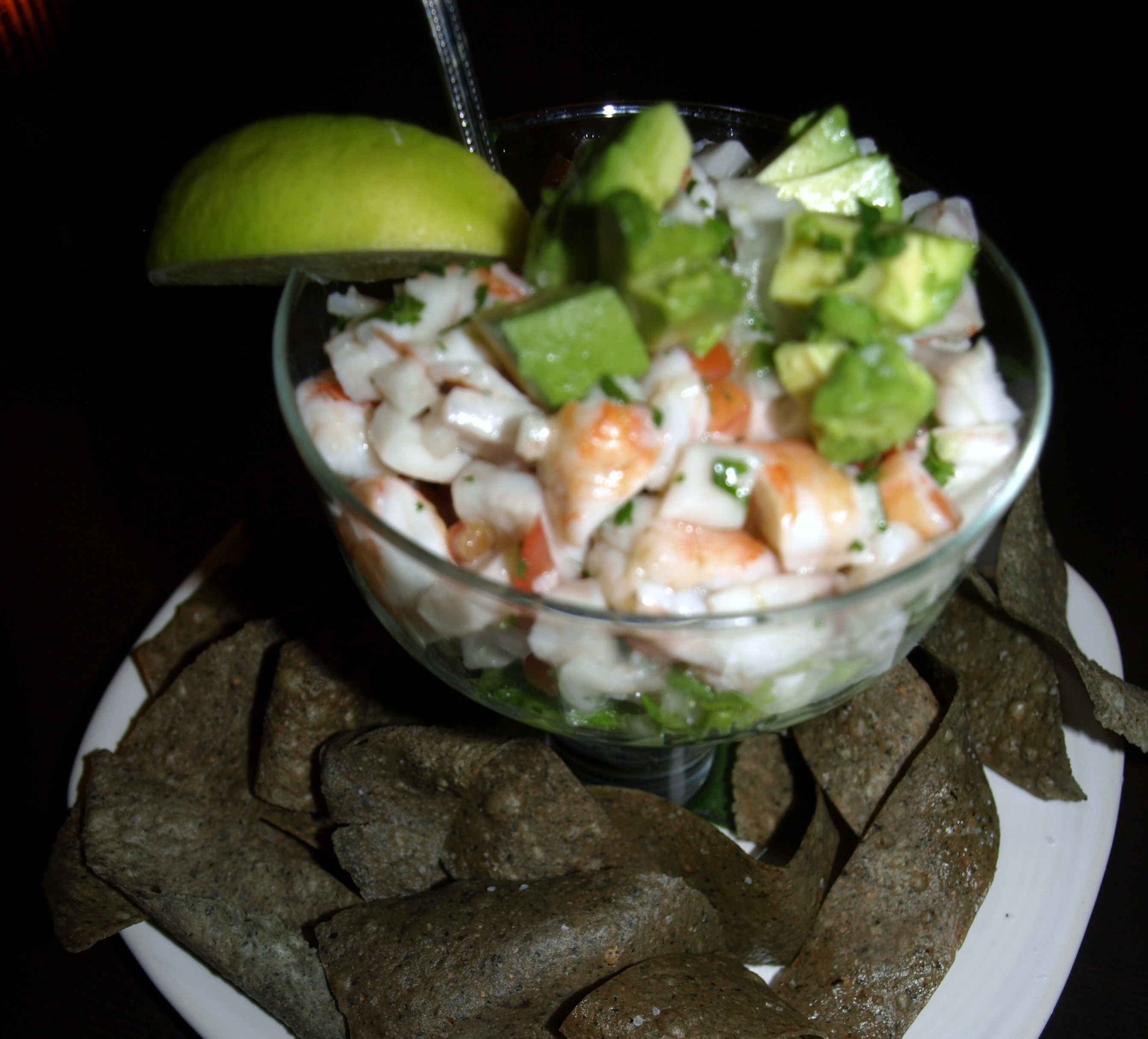 After sitting down, we saw the menu and there were 12 items for us to try. The starter of the meal was the ceviche mixto, a simple but delicious mix of shrimp and fish “cooked” in lime juice with tomato, cilantro, onions and avocado. The lime provided a tart, acidic bite that worked particularly well with the sweetness of the shrimp and the bite of the onion. For $9, this was big enough for 4 people to share.