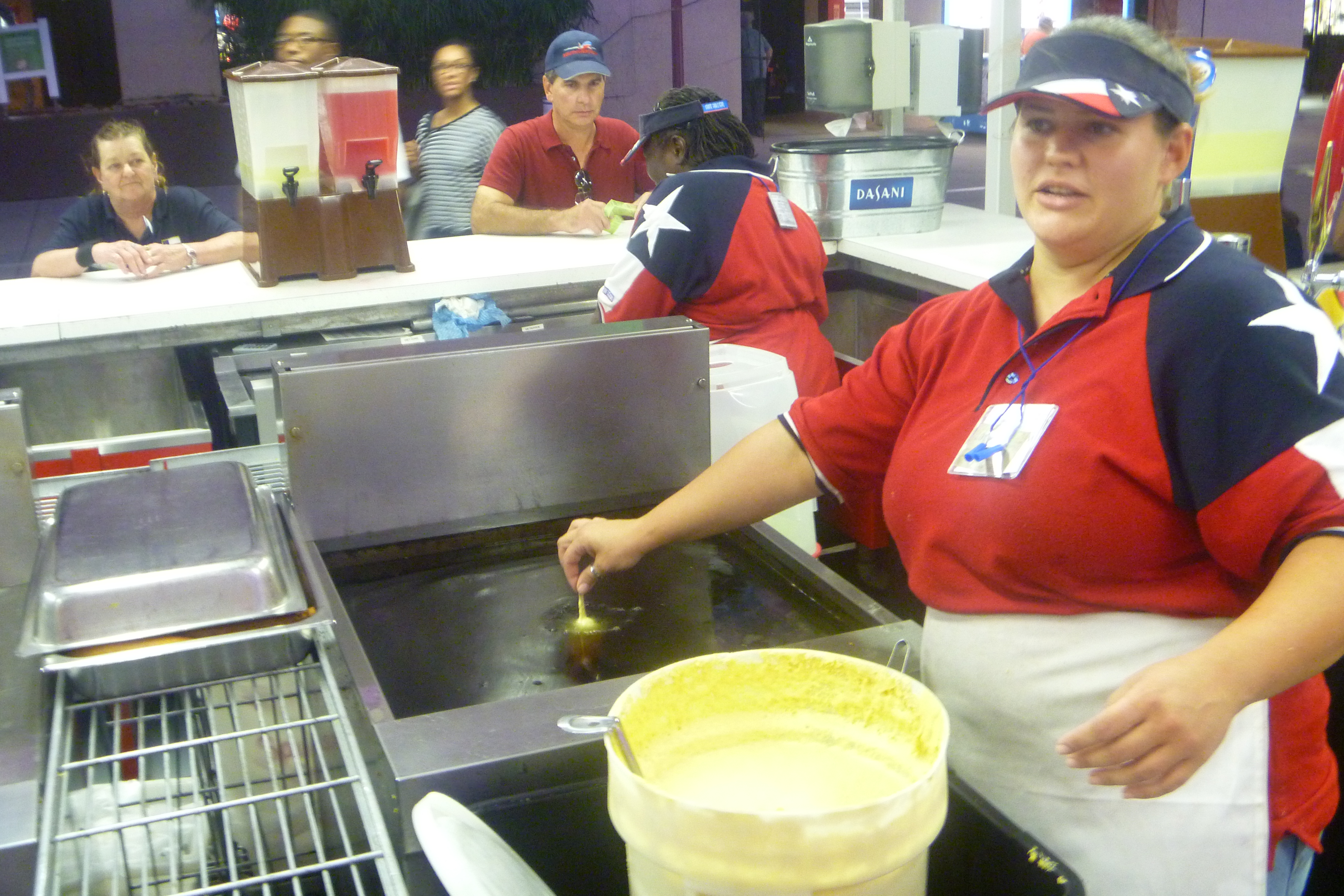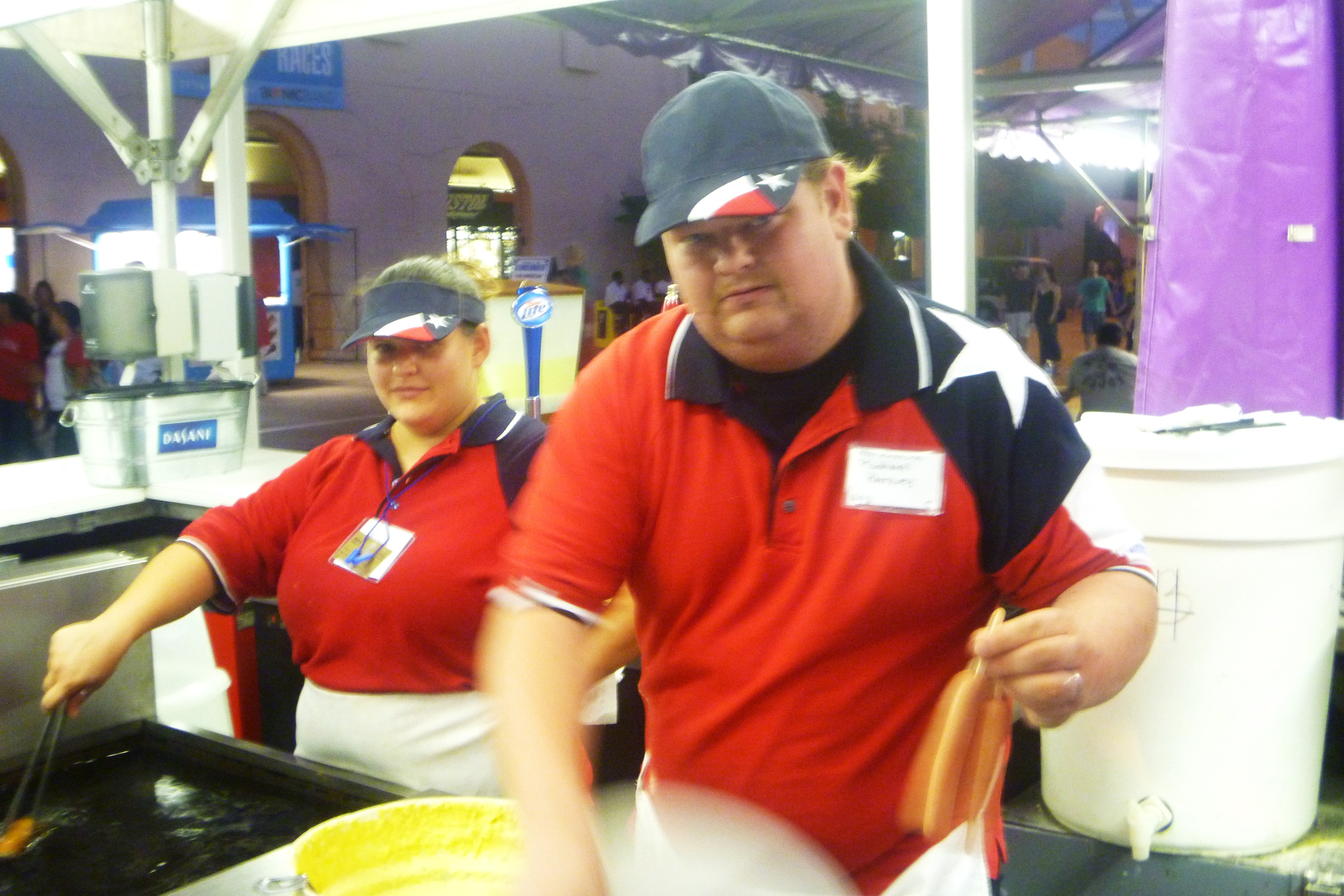 Michael Karney: Skip Fletcher, my boss, his father invented the corny dog in 1942. The first year they had them out here they didn’t sell, they actually had to give them away. The batter has not changed much at all since 1942. The meat has since been customized and is made specifically for Fletcher’s. You can’t get them any where else except here, Texas Motor Speedway and a few small events through out the year.