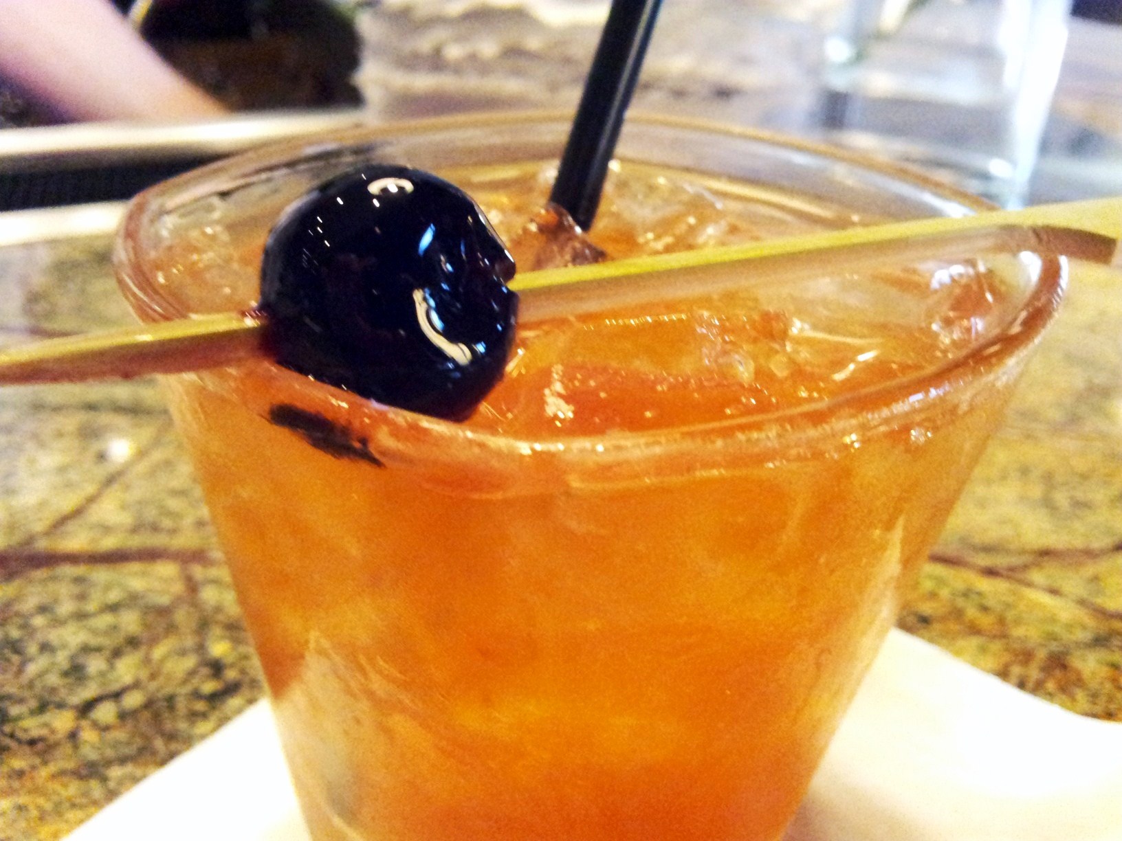 Again, I wanted something out of the norm and Abraham laughed at my refusal to take his suggestions. “How about the Distinguished District Man?” I asked, because the name caught my eye. “It’s good, it’s strong…” he looked me up and down…”do you usually drink scotch?” I guess I don’t look the type that would be able to handle the Johnny Walker Black Label, Cinzano Bianco, Clover Honey, and Bitters but I was determined to try it nonetheless. But kids, learn this lesson from me: Always trust a good bartender like Abraham. They have a sixth sense; they just know what you need. The Distinguished District Man is a play on a Scotch Old Fashioned. It is a strong, beautiful drink, and my brother would have been proud that I tried it, but it wasn’t for me (except for the incredible Luxardo Cherries they placed on top. That, I asked for seconds.)