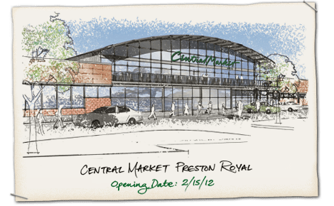 It has been a busy day, and I had a few deadlines to hit so I missed Media Day at the new Central Market located at one of my very favorite foodie junctures in Dallas — Preston and Royal Lane. The new market opens its doors to everyone in the morning (Wednesday, February 15, 2012) and for those nearby you will be in for all the grand opening treats that is expected with Central Market.