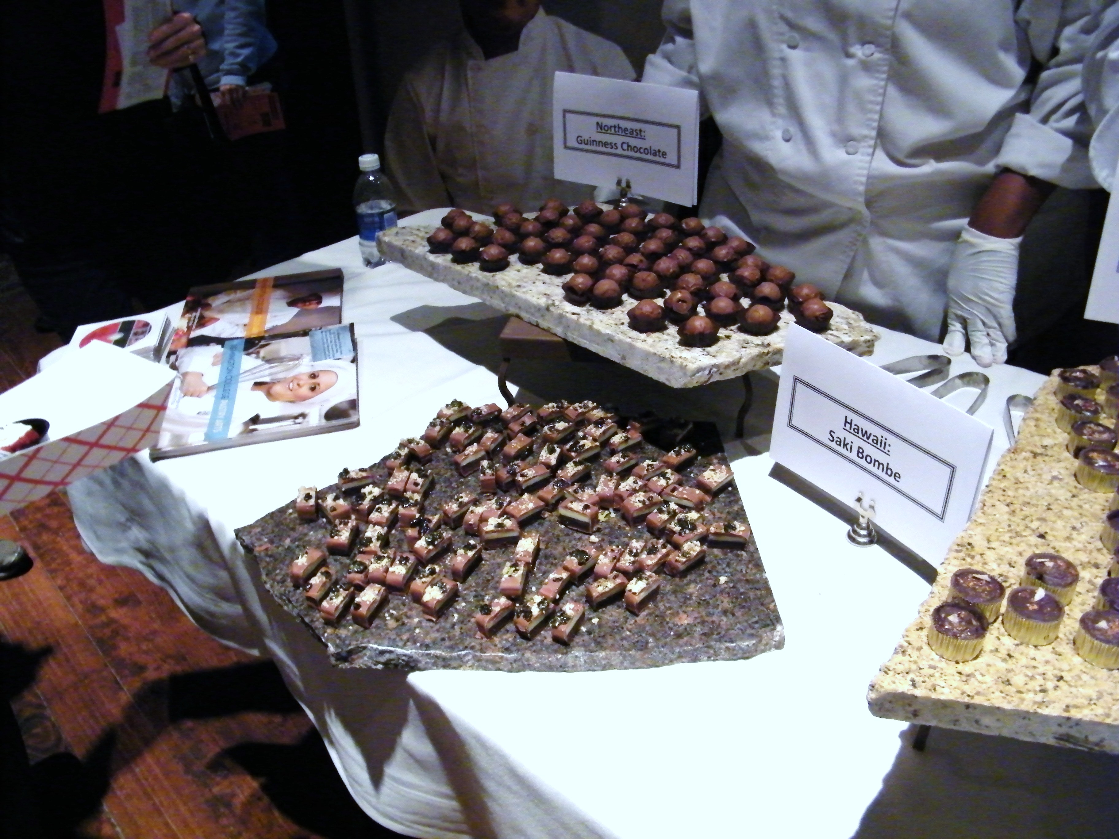 Some surprises included Remington College culinary arts department students who wowed with confections inspired by regions of the United States including Guinness chocolate truffles (Northeast), chocolate St. Louis brownie (Midwest), the Saki bombe (Hawaii) and Southern iced tea chocolate (South)… all artfully presented. The Embassy Suites Hotel—Outdoor World showed that its hand-painted artisan chocolates could hold their own with the likes of the D/FW area’s foremost chocolatiers.