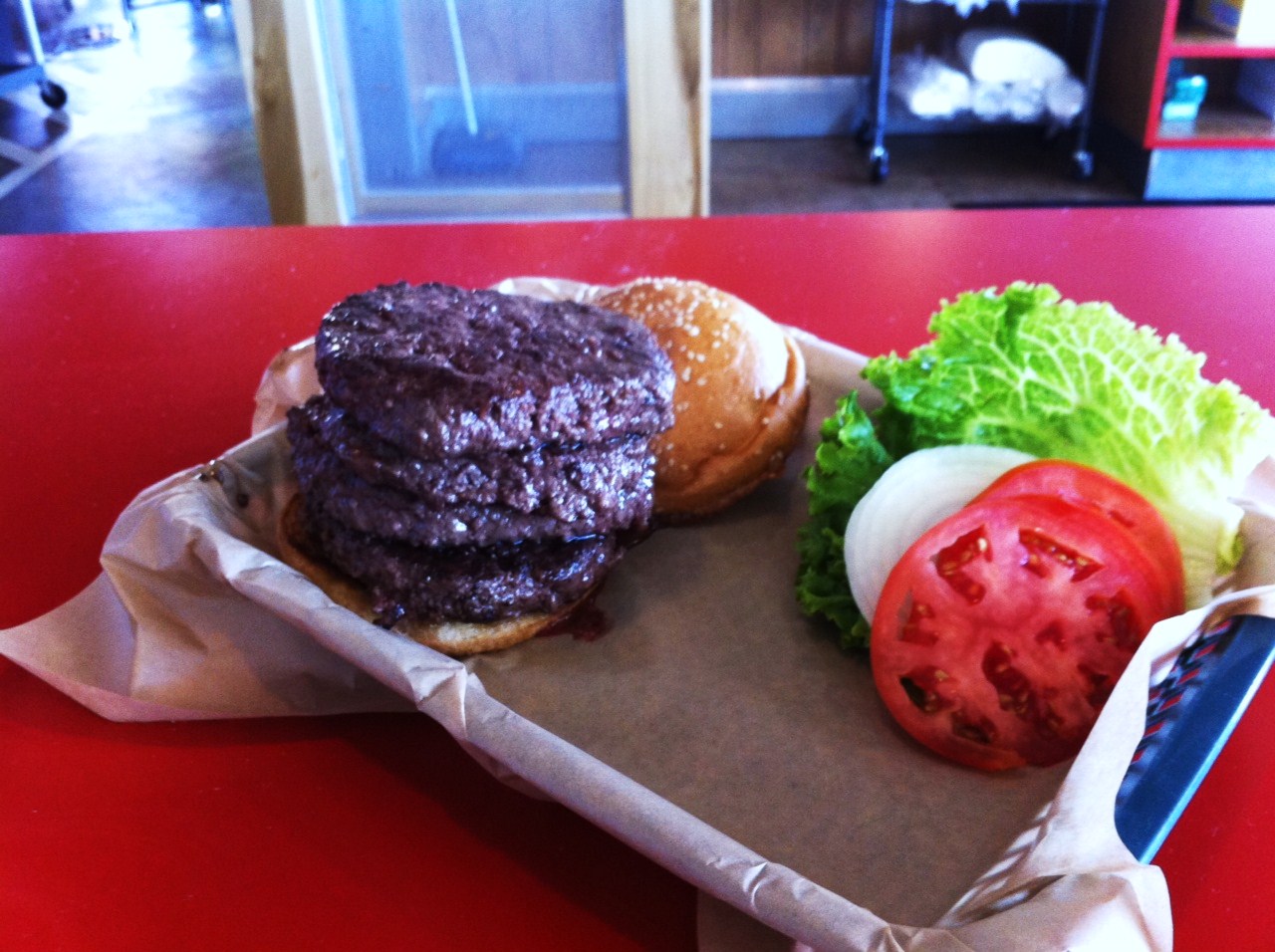 In honor of Josh Hamilton’s four home runs in last night’s game, Twisted Root Burger Co.’s Deep Ellum location is serving up a quadruple patty burger named the Josh Hamilton for 10 bucks! Available today only, come and get it if your mouth can hang. GO RANGERS!!!!