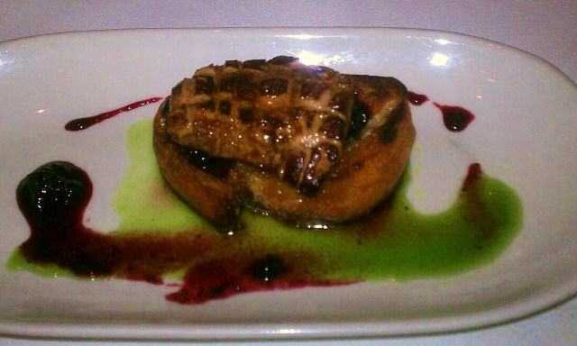 On the appetizer side of the menu the Beef Carpaccio Shaved Pecorino, Arugula, Dijon-Crème Fraiche was light yet lush. Unlike any such dish we have experienced. But the star of the evening was the Seared Hudson Valley Foie Gras on a Huckleberry “Bruschetta” & Fennel Syrup. Carbery actually offered this as our final course, and that made total sense. The not-overly-sweet huckleberry and fennel syrup was the perfect sweet ending and paired insanely well with a 2008 Honig Sauvignon Blanc Late Harvest.
