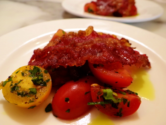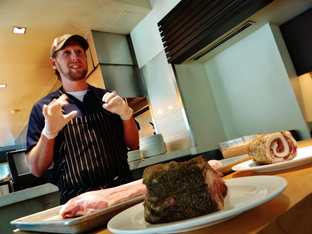 We moved on to Central 214 where we not only sampled pancetta (it’s bacon!) but also a house-made beef bacon along with a demonstration on how to actually make our own bacon. This was a particular thrill for the crowd. We were treated to samples of the beef bacon in a special salad they offer each day at the restaurant.