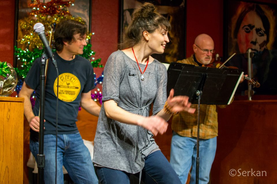 After several musicians play, up comes Katelyn Harris, professional tap dancer. Yes, ladies and gents, that’s right – a professional tap dancer. Mark and Thiago accompany her with a Bach concerto. Thiago has never heard the piece, so Mark looks for it online. Mark then props the computer on top of the piano. Katelyn improvises a tap routine as Mark and Thiago sight-read. They toss in occasional bits of swing and ragtime. Dear readers, do you have any idea how incredibly difficult that is? They had to know three – THREE – different styles of music well enough to be able to improve on a whim. Never mind the enormous skill in sight reading any piece of music, let alone on a computer, barely-balanced on a piano. Katelyn taps on pointe while another pianist tosses popcorn into Thiago’s open mouth. He catches it, never missing a note.
