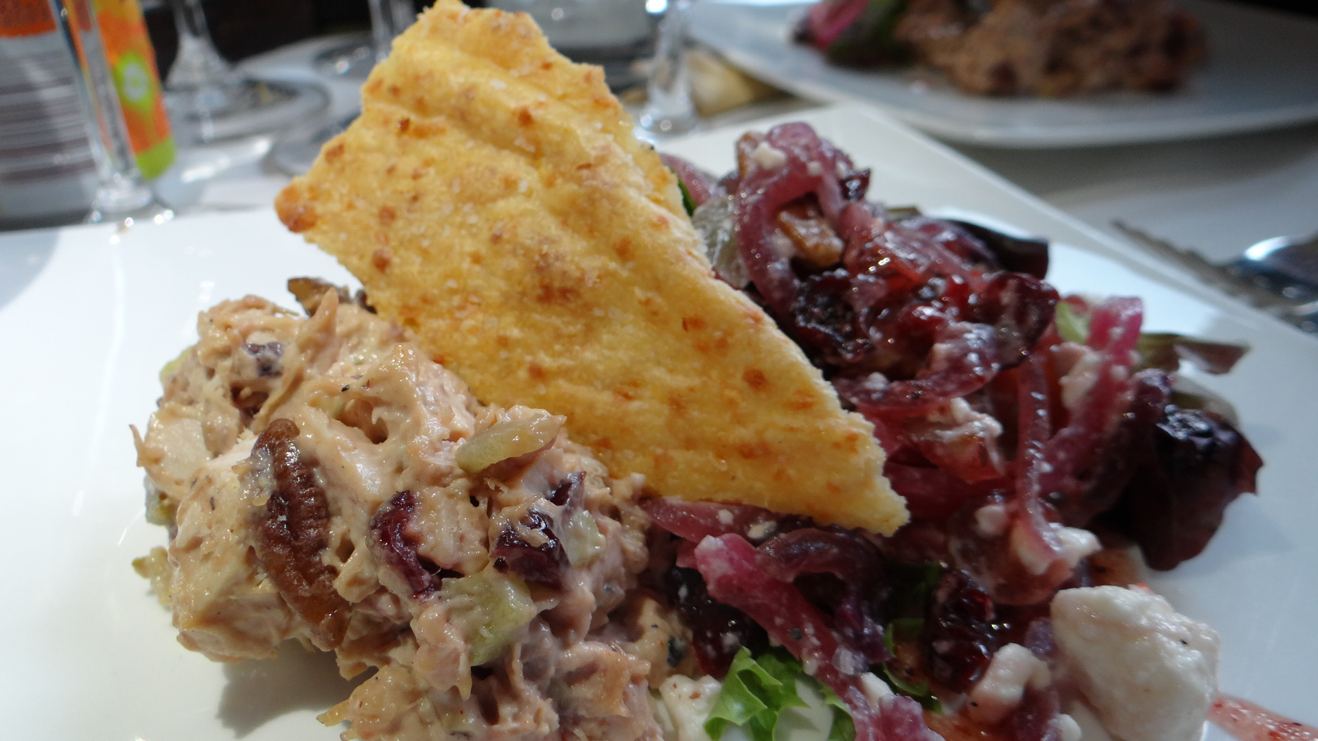 After a cocktail hour in the beautifully manicured courtyard, complete with a selection from Deep Ellum Brewing Company and multiple hors d’oeuvres, diners were treated to a fantastic four-course meal. In true southern fashion, we began with a salad duo. The chicken salad was flavorful and light, while the accompanying grape, red onion and aged cheese salad added a delicate acidity to the plate.