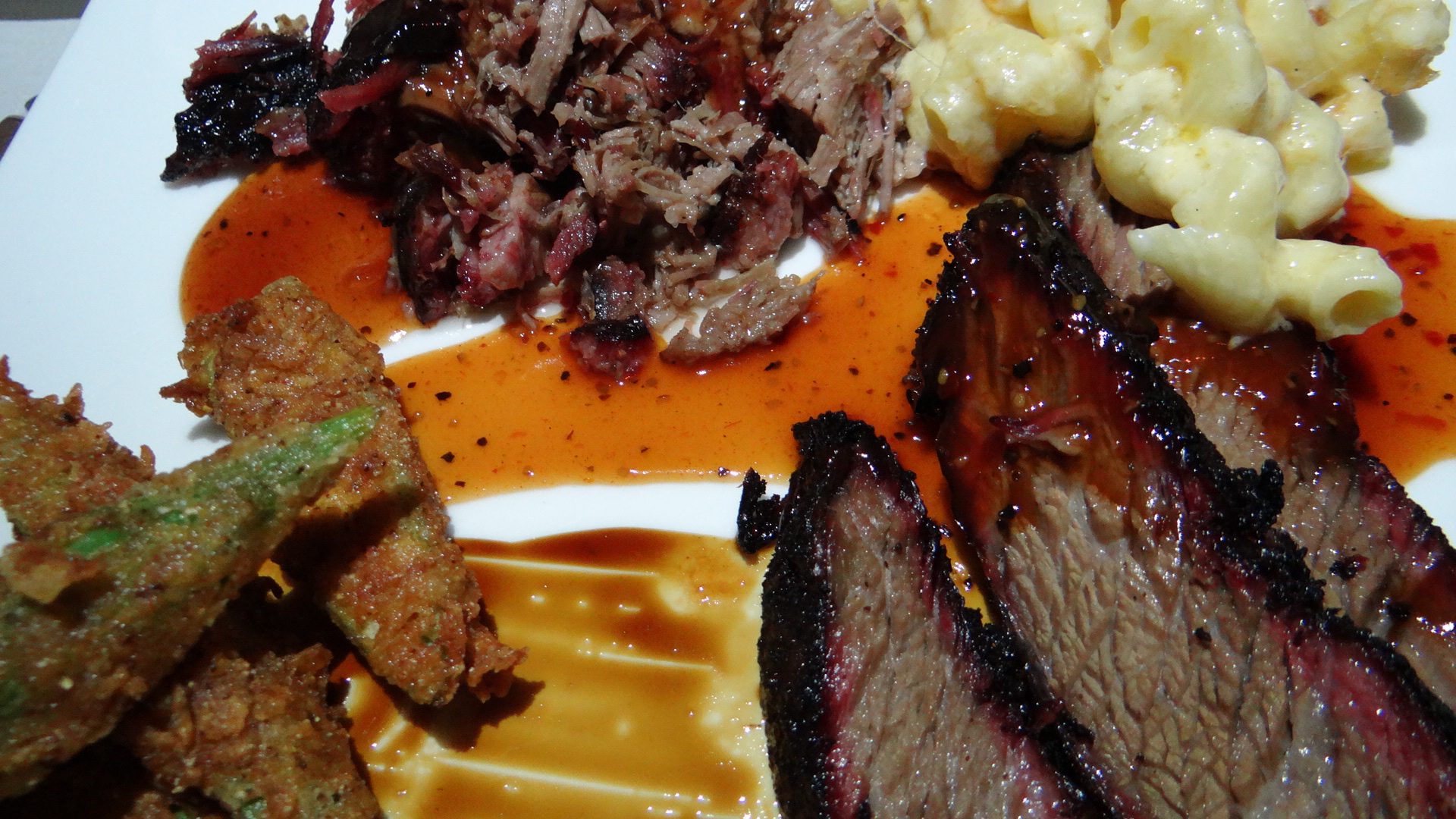 Next was barbecued, bacon-wrapped shrimp. The skewers were served atop gouda grits, an excellent combination. The bacon was crisp and the barbecue sauce was savory, preparing diners for the amazing plate of meat that would soon be set before them. It’s impossible to say that any one item of the entrée stole the show. With incredibly tender pulled pork, rich macaroni and cheese, perfectly charred short rib, and buttermilk soaked, flash fried okra, the plate was the equivalent of a gold medal winning Olympic team.