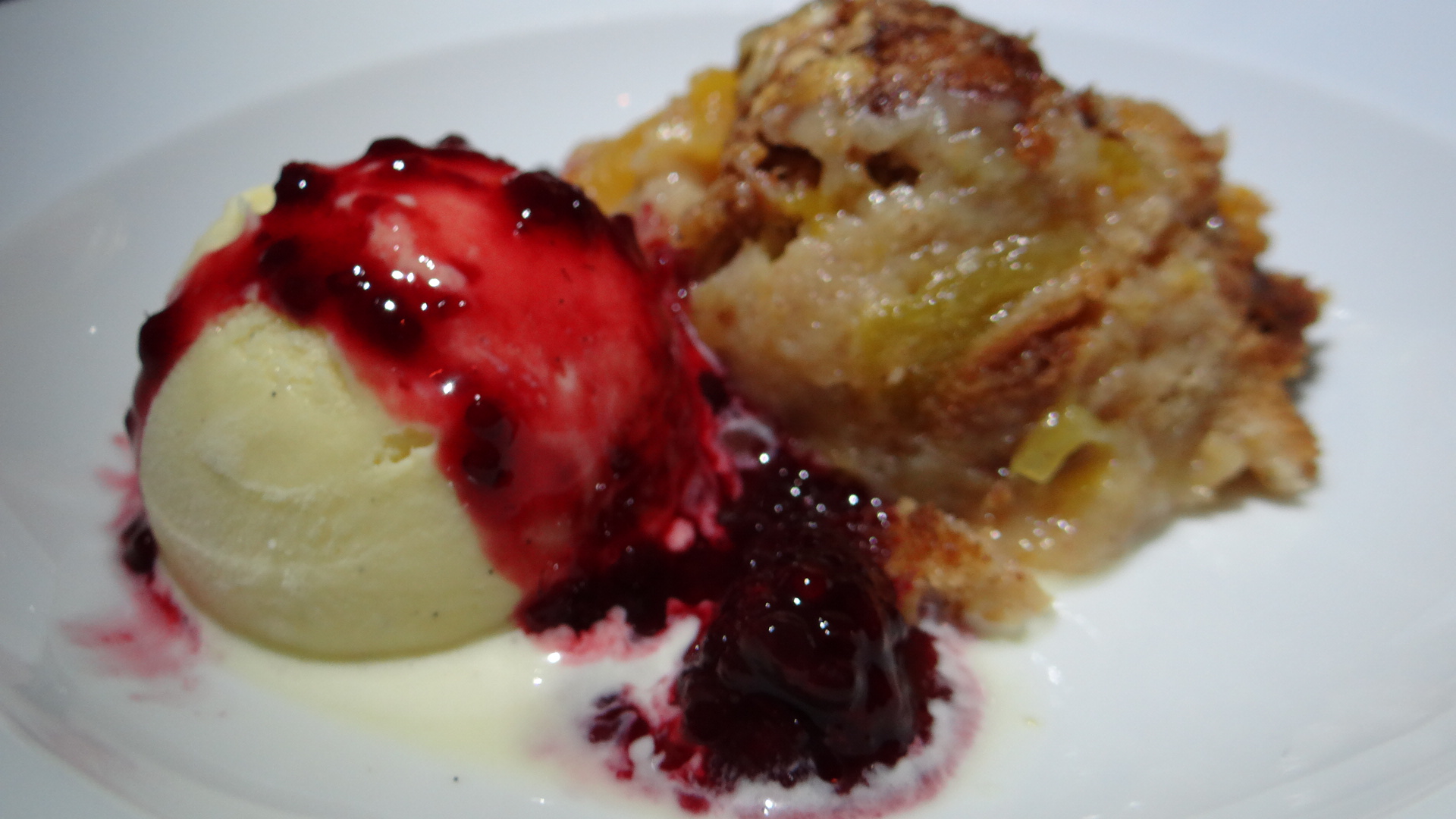 The meal ended perfectly with a peach cobbler and ice cream topped with blackberry sauce. Speaking as a person that doesn’t usually order dessert, I couldn’t put my spoon down. Feeling full becomes a mute point when you are served a bowl of delicious cobbler.