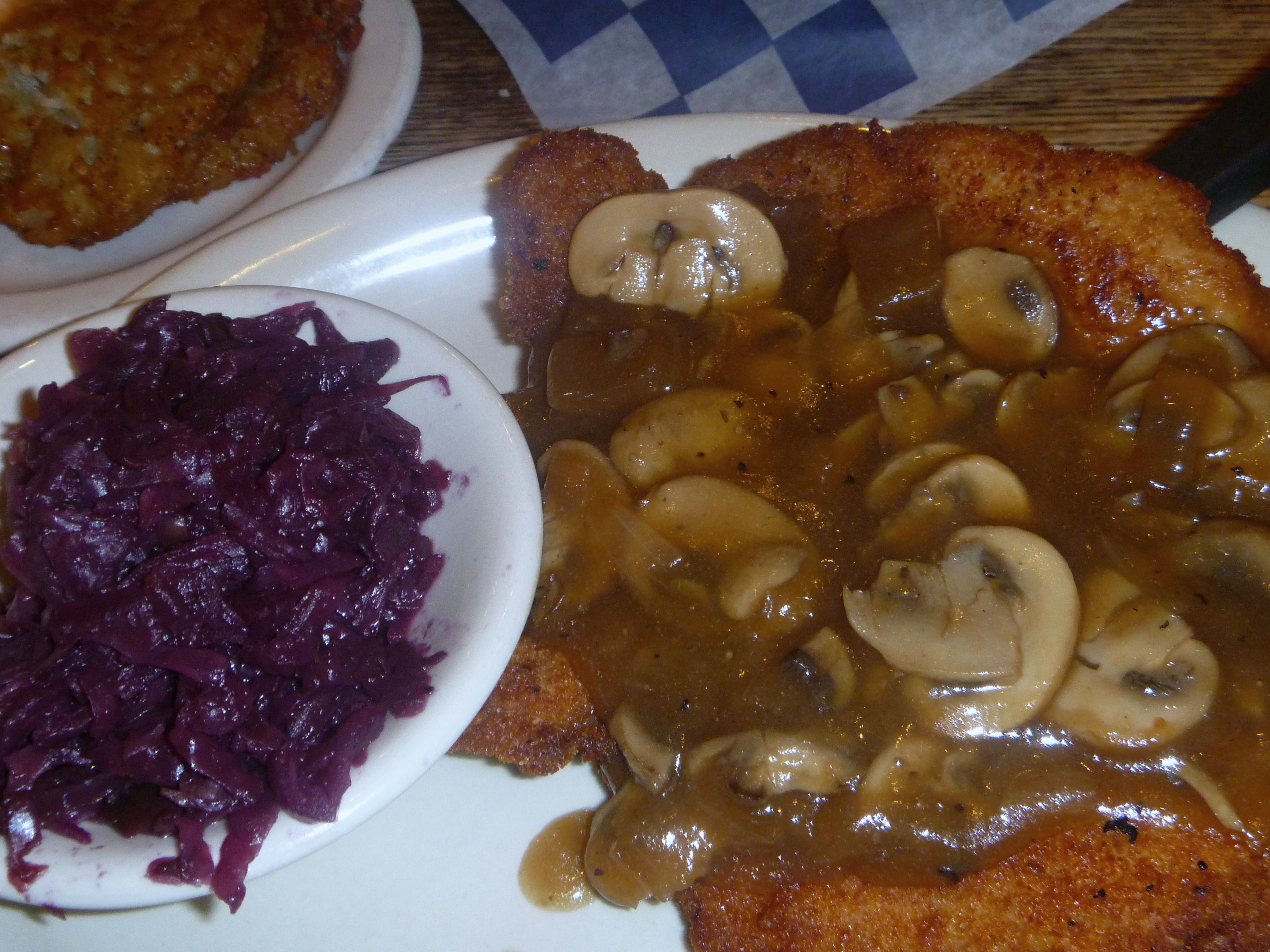 Julie Andrews may prefer her Schnitzels with noodles, but we chose potato pancakes this day to pair with our Jager Schnitzel.