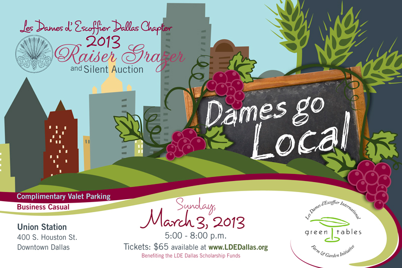 The Dallas Chapter of Les Dames d’Escoffier will present its annual Raiser Grazer, this year themed “A Fresh Approach”, on Sunday, September 28, 2014 from 5 p.m. until 8 p.m. at The Shed in the Dallas Farmers Market, located at 1010 South Pearl Expressway at Pearl Street in downtown Dallas. “A Fresh Approach to the Raiser Grazer” features chefs from the organization’s chapter partnering with local farmers whose produce is available in the Dallas Market to create the menus for the event.